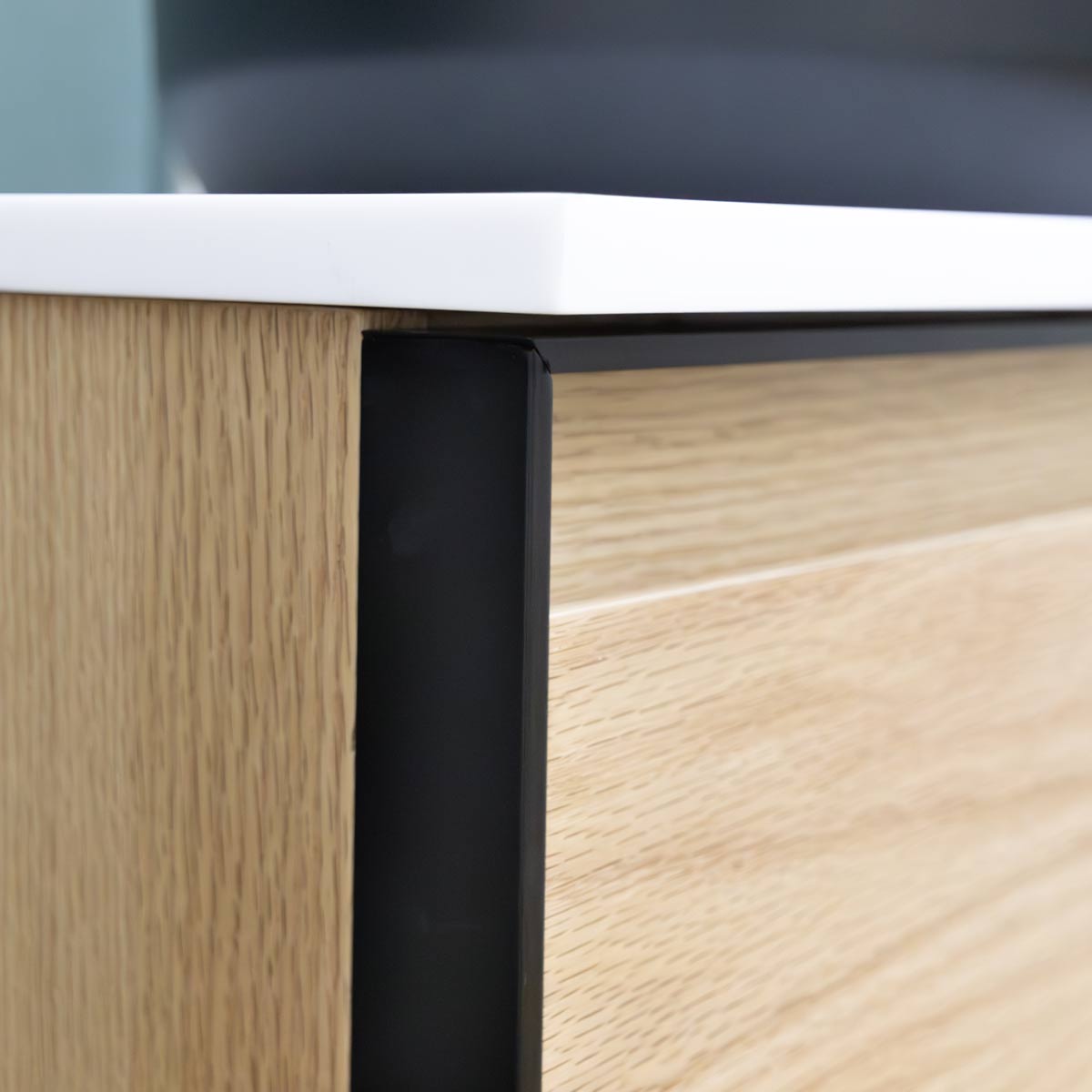 Son tiroir bénéficie d'un encadrement métal satiné et d'une prise de main intégrée à la façade en bois. Ce meuble à suspendre au mur trouvera facilement sa place dans votre salle de bain. L'alliance du métal et du bois naturel confère un caractère authentique à la collection. Par sa forme asymétrique, vous bénéficierez d'un grand tiroir avec un espace de rangement ouvert facile d'accès.